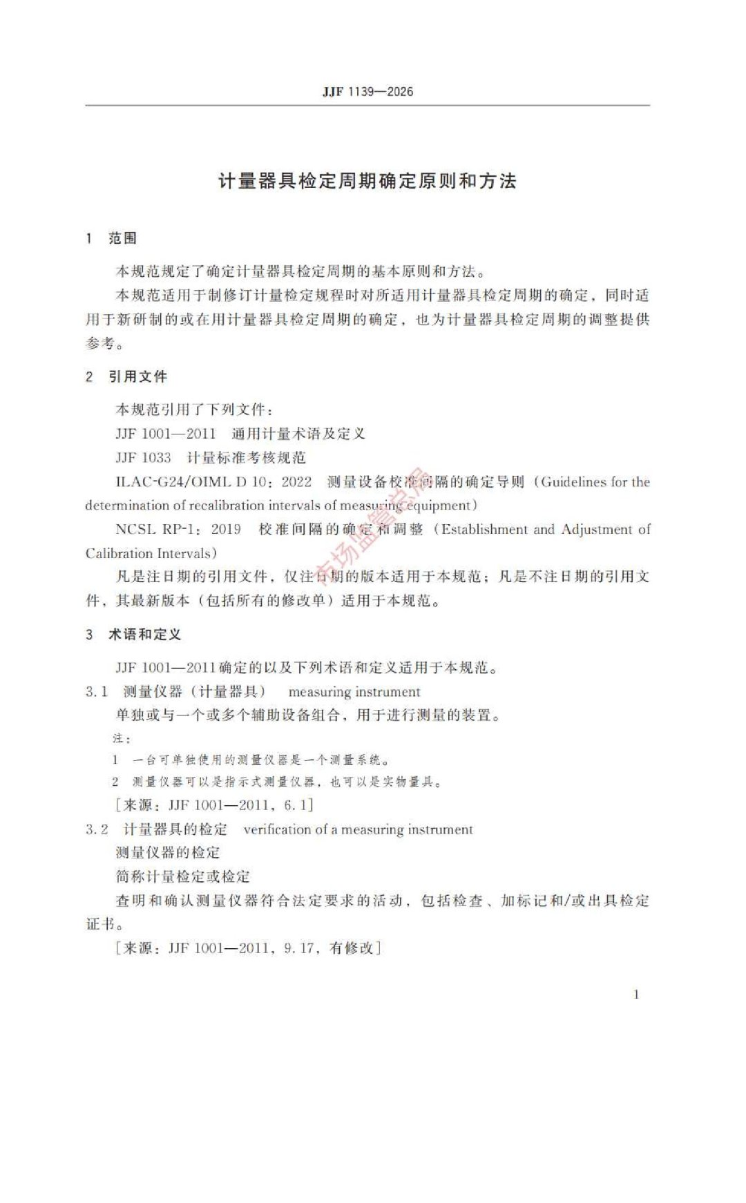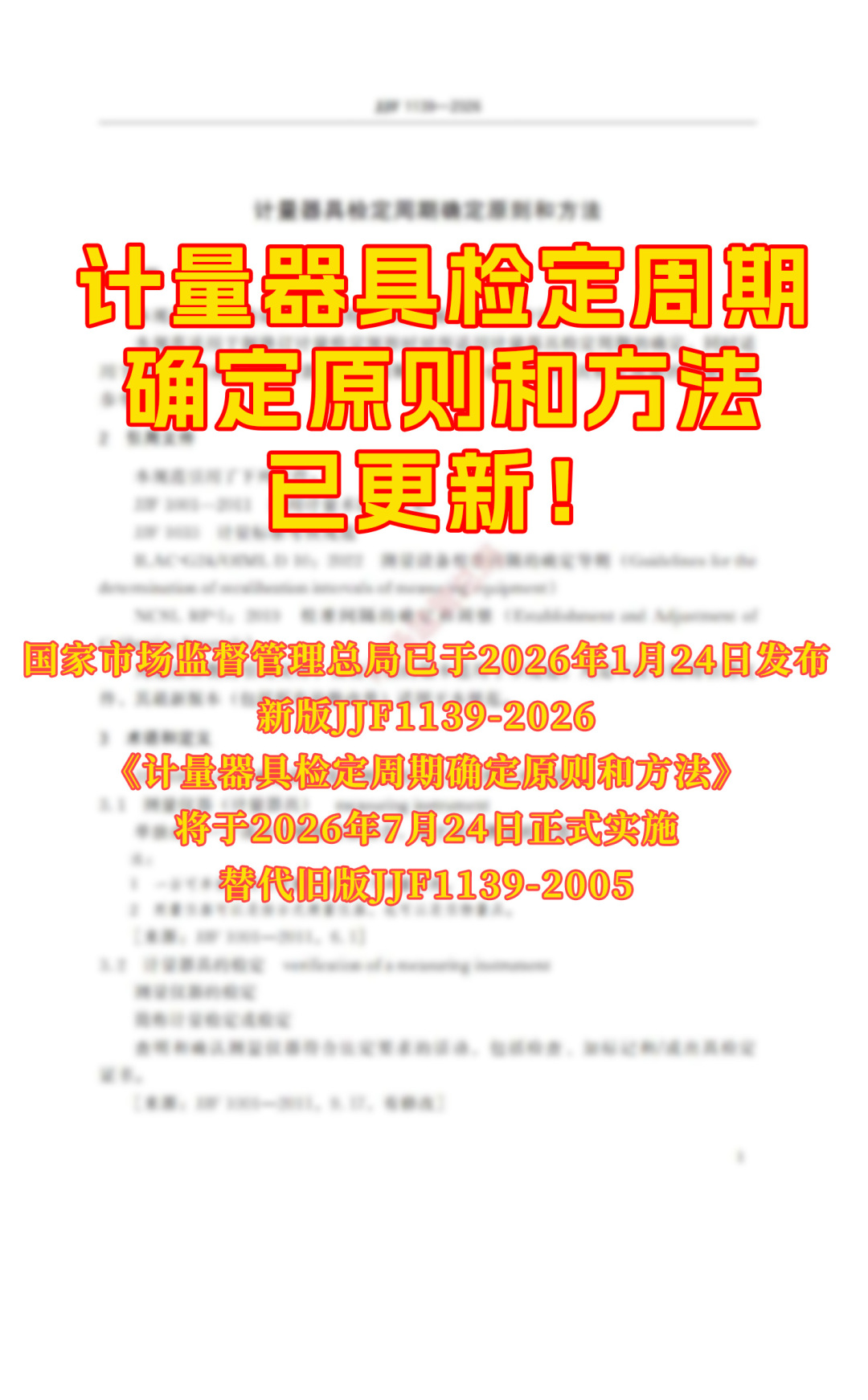 国家市场监督管理总局已于2026年1月24日发布新版JJF1139-2026《计量器具检定周期确定原则和方法》,将于2026年7月24日正式实施,替代旧版JJF1139-2005